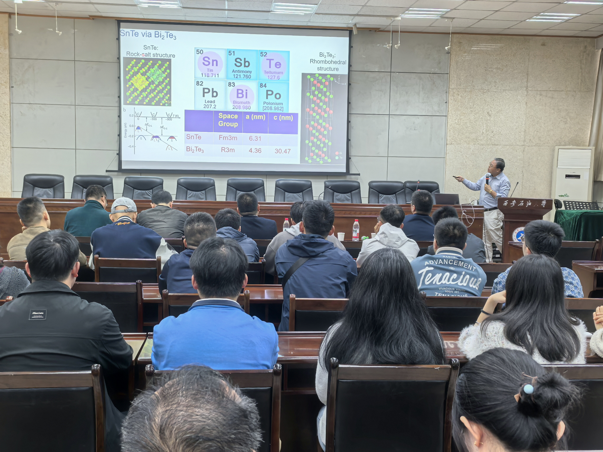 聘任仪式后,邹进教授为学校师生作了《先进电子显微学在纳米材料中的应用及Nanoscale,Nanoscale Advance期刊介绍》的学术报告。他结合自身近40年的研究实践,深入浅出地介绍了透射电子显微镜、原位电子显微技术等尖端表征手段的原理与发展,分享了其团队通过先进电子显微镜技术在低维纳米材料形态、微结构和化学特性方面取得的研究成果。适逢2025年诺贝尔化学奖授予Susumu Kitagawa、Richard Robson、Omar M. Yaghi等三位科学家,以表彰其在金属有机骨架(MOF)开发领域的贡献,邹教授诠释了此次诺奖的获奖背景,勉励在座师生重视基础研究,深耕专业领域,永攀科学高峰,并就“透射电镜(TEM)操作”“国际交流合作”等问题与现场师生进行互动。