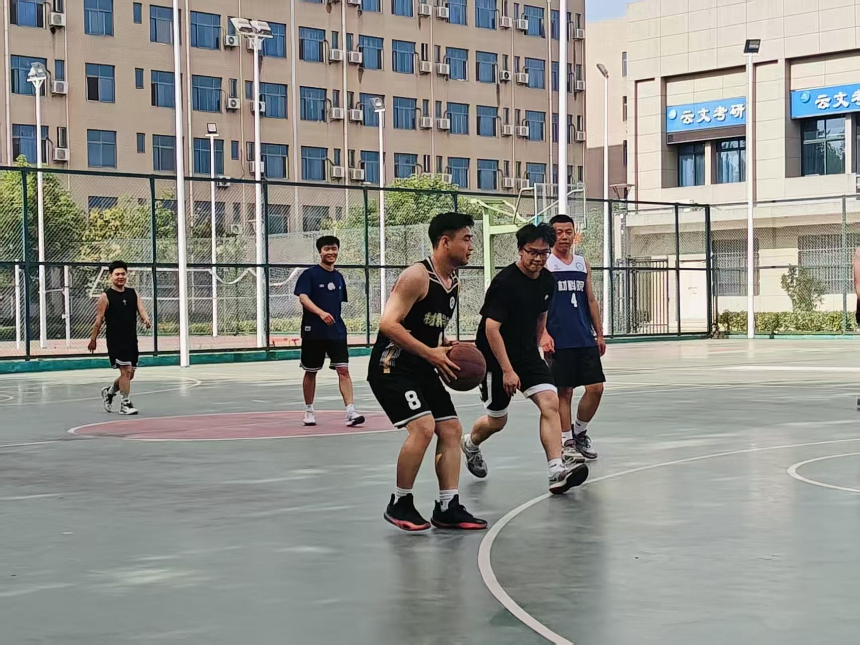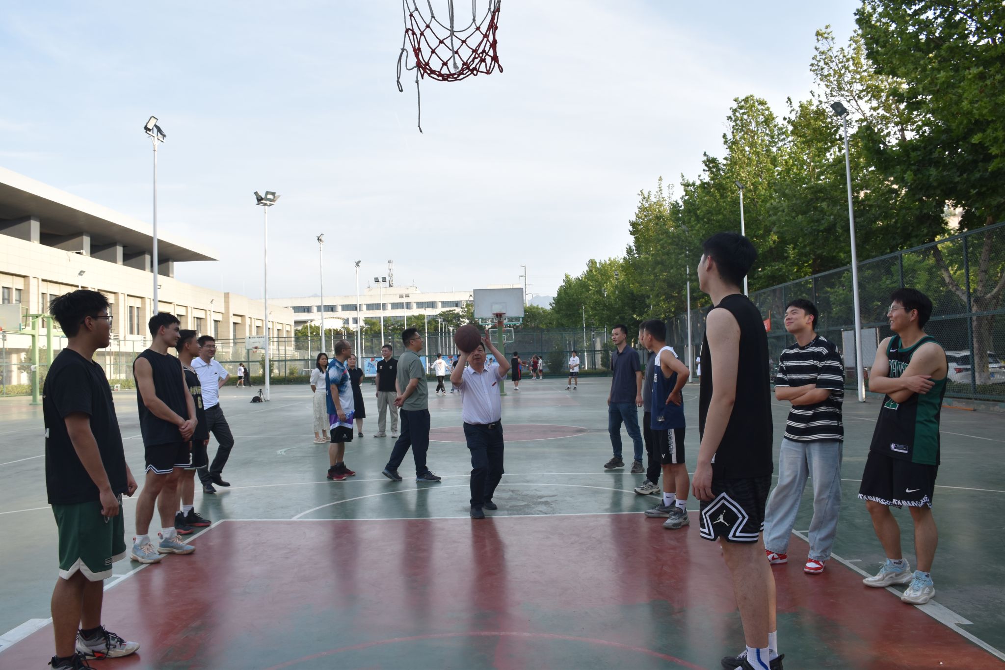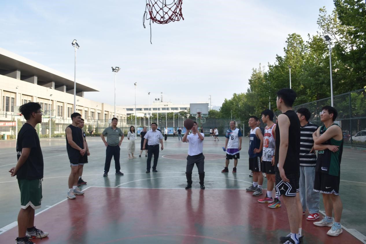 篮球场上,教师与学生们组成混合队伍,随着哨声的响起比赛正式拉开了序幕。毕业生们迎“篮”而上,积极调整战术,奋力拼搏,展现青春的活力;老师们沉稳应对,配合默契,展现不可阻“篮”的风采。赛场没有胜负,唯有交织的笑语与汗水,师生的脸上都洋溢着笑容,用活力与汗水传达着对运动和生活的热爱,毕业生通过配合传球表达对老师的感谢和对学校的不舍,老师通过配合传球为毕业生送去祝福,传递希望,希望他们在未来的道路上始终保持乐观自信、拼搏进取的精神风貌。