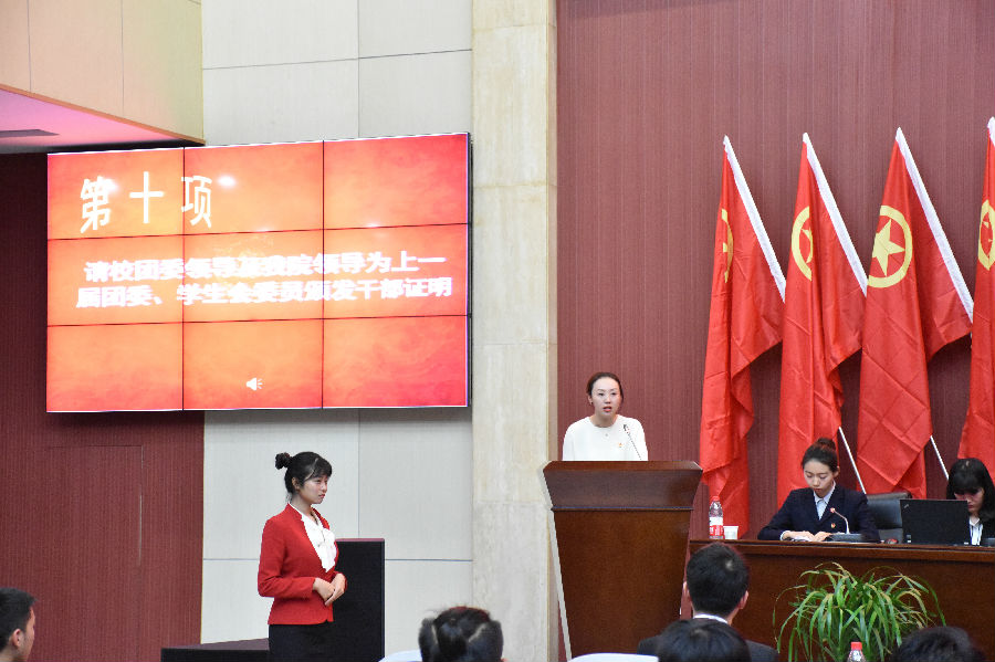 会议审议并通过了学院第九届团委工作报告、学生会工作报告。经过候选人竞选演讲,代表投票选举,产生了共青团AC米兰(milan)材料科学与工程委员会第十届委员会和材料科学工程学院第十届学生委员会。同时,校团委书记贾丽娜和院党委副书记马文庆为上一届团委委员、学生会委员代表颁发干部任职证明。最后,当选委员在团学指导老师郭丽君老师的带领下进行了庄严的宣誓。