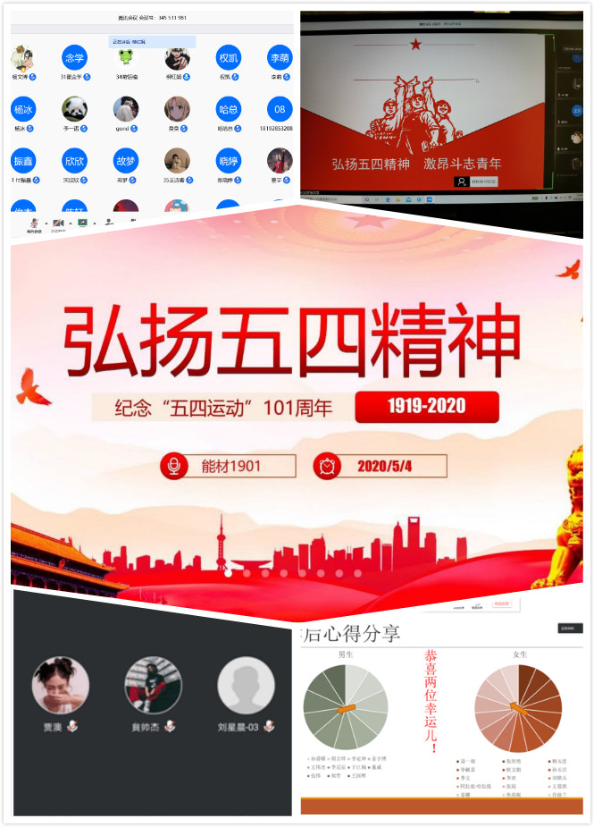 其中,材料类1803班集中学习了习近平总书记在五四青年节到来之际给新时代青年的寄语,并结合当下疫情形势畅谈青年人的担当和使命;材料1902班汉佳宇同学和材料类1904班张鑫同学在班团会上还做了主题演讲,他们号召同学们要自觉肩负起历史和时代赋予的使命,把个人的梦想与国家的前途紧紧地结合在一起,以国家富强、民族复兴、人民幸福、社会和谐为己任,挺起时代脊梁。以青春的名义,志存高远,脚踏实地,迎接新时代,书写新华章;焊接卓越1801班、材料类1902班等组织全体同学学习了抗疫英雄及优秀青年事迹,旨在激励广大团员向抗疫英雄及优秀青年学习,以榜样的先进事迹为方向,坚定理想信念、练就过硬本领,始终保持艰苦奋斗的前进姿态,用勇气、责任、担当和奉献绽放青春的绚丽之花。