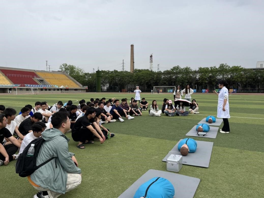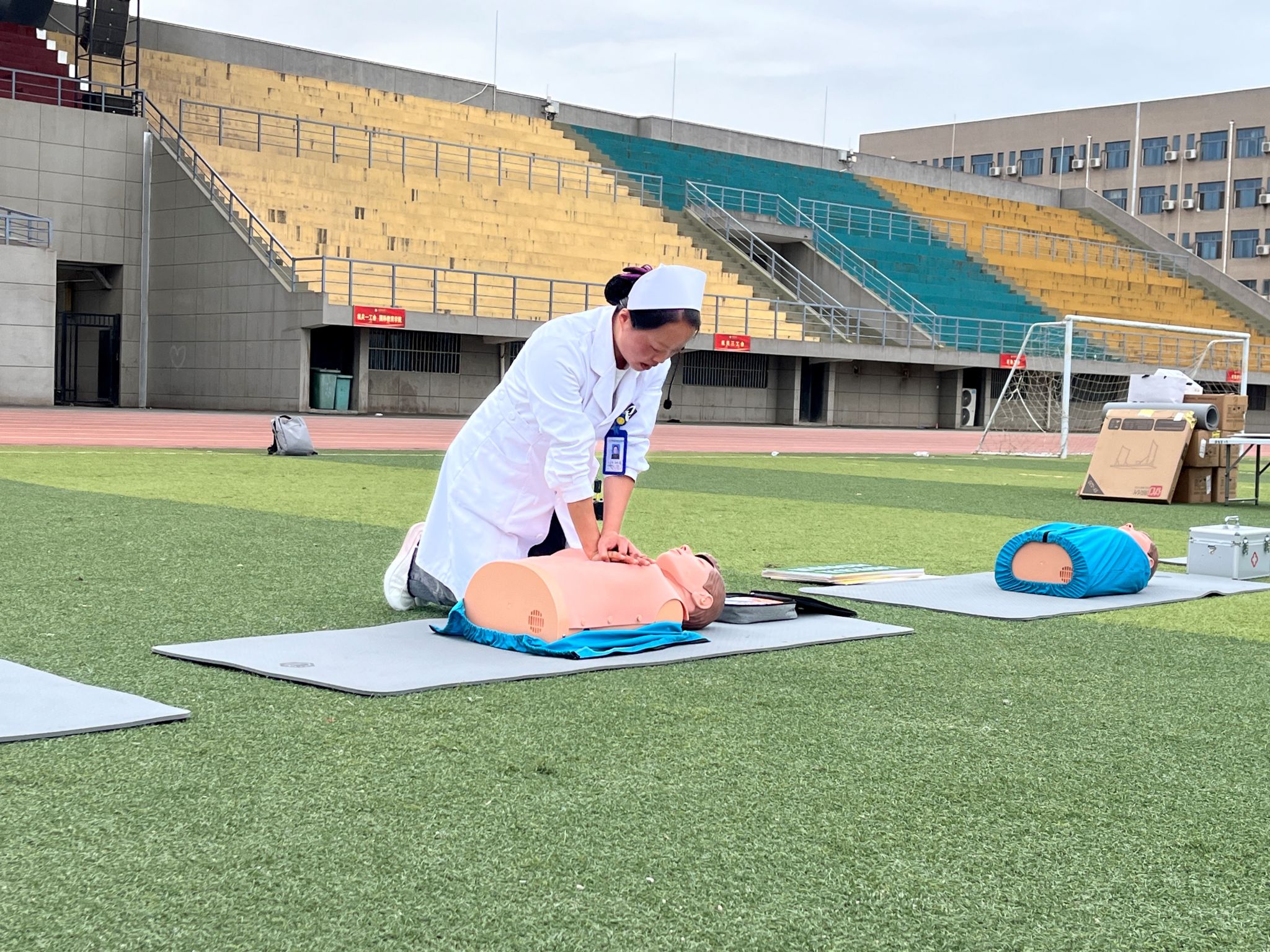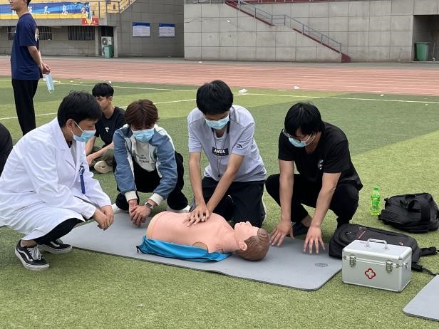 为普及急救知识,增强学生应对突发事件的处置能力。5月14日下午,AC米兰中文联合校医院在鄠邑校区东操场开展应急救护培训活动。培训内容涵盖异物卡喉(海姆立克急救法)、中暑晕倒、烧烫伤处理、心肺复苏(CPR)及自动体外除颤器(AED)使用等实用技能,通过理论讲解与实操演练相结合的方式,为师生共同带来了一场生动实用的生命教育课。