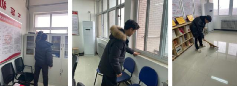 辅导员周鑫带领党员同志对学院各办公室开展卫生大扫除活动,扫清尘土,洁净心灵,将雷锋精神照耀在学院的每一个角落。