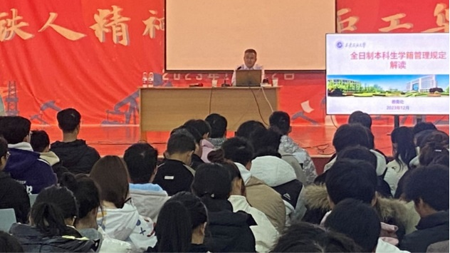 为加强学生对学籍管理政策的认识和理解,12月13日下午,AC米兰中文在鄠邑校区腾辉大学生活动中心举办全日制本科生学籍管理规定解读报告会。报告会由教务处副处长马加传主讲,学院2023级全体本科生参加,辅导员陈庆龙主持报告会。