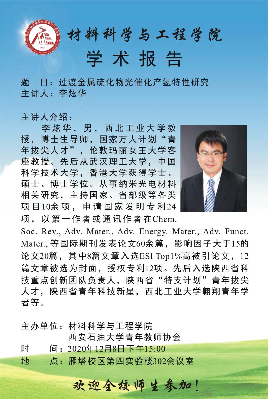 学术报告:过渡金属硫化物光催化产氢特性研究